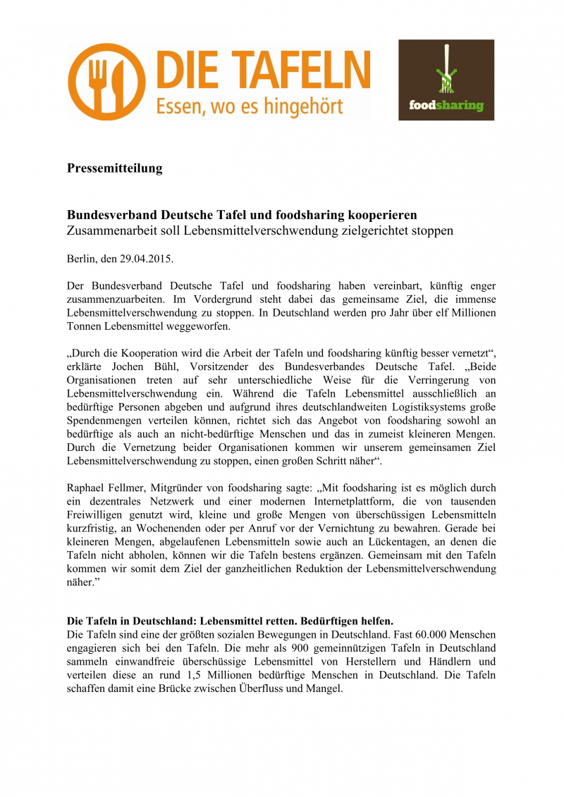 (Weitergeleitet von Pressemitteilung zur Kooperation mit den Tafeln)