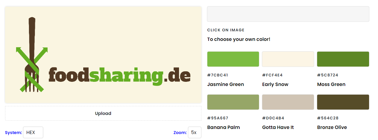 Als nächstes wählt ihr eure Farben aus. Achtet bei diesen darauf, dass sie den Farbcodes von foodsharing entsprechen. Wenn ihr Farben verwendet, dann die folgenden Farbcodes nutzen: